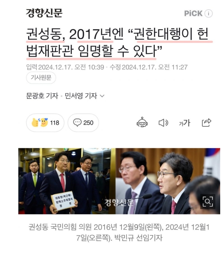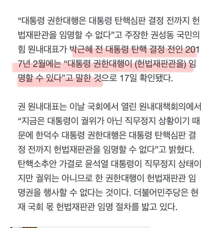 2017년 권한대행이 헌법재판관 임명할 수 있다?권성동 한말 ..
