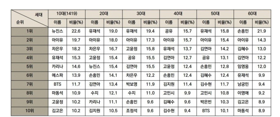 연령별 좋아하는 광고모델