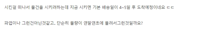 택배물량이 대란이네요