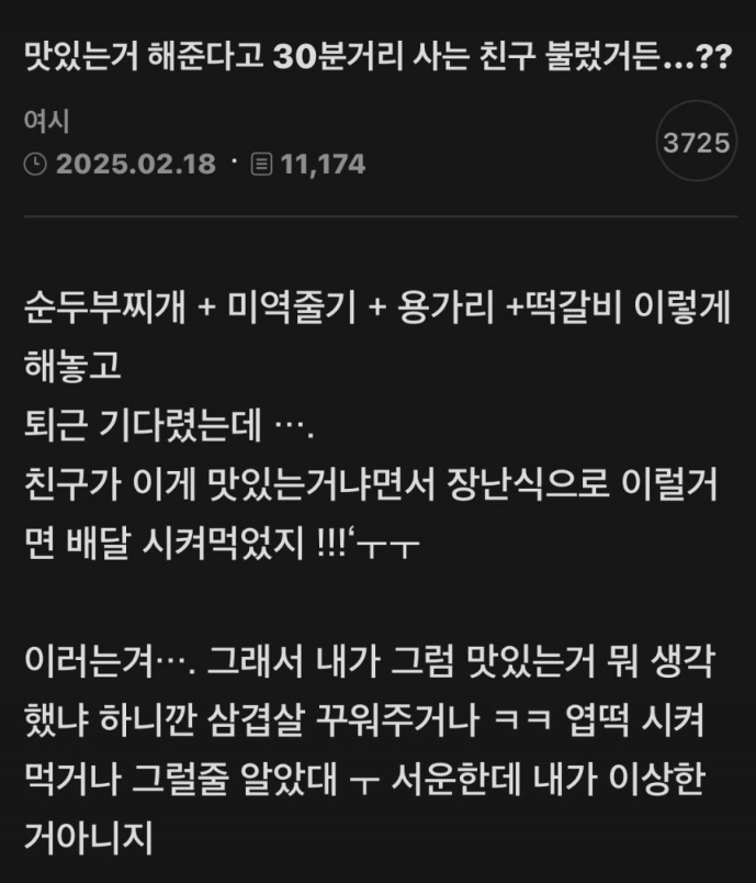 맛있는거 해준다고 30분거리 친구 불럿느데