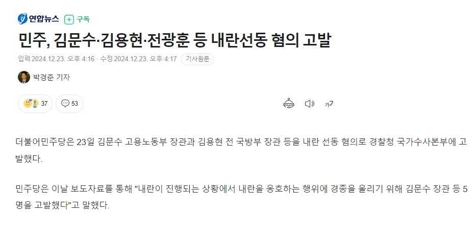 김문수 김용현 전광훈 등 내란선동 혐의 고발