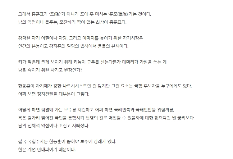 그래서 그가 이재명과 맞서는 건 당랑거철이다.