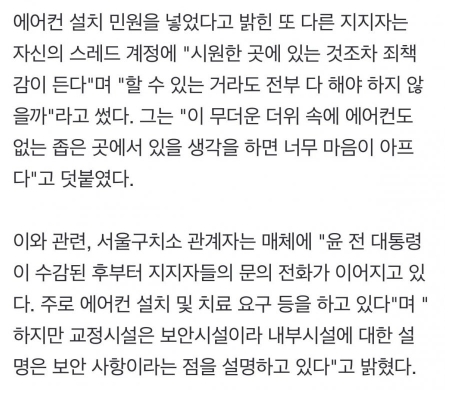 지지다들 윤씨방에 에어컨 설치해달라 민원...
