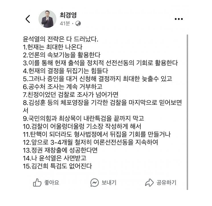 최경영 기자 sns. 윤석열의 전략