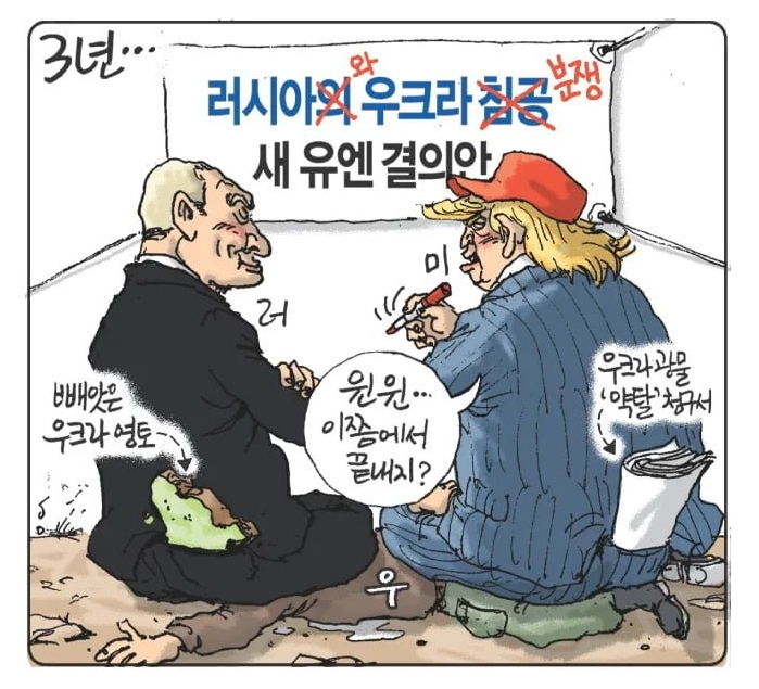 우크라이나 없이 영토 나누는 러-미 ㅋㅋ