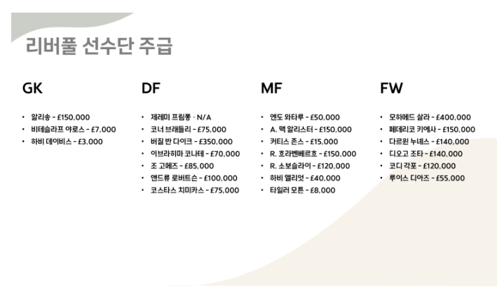 리버풀 선수단 주급