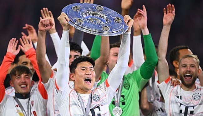 이번 시즌 분데스리가 우승을 차지한 바이에른 뮌헨의 우승 세리머니에서 김민재가 특별한 장면으로 화제를 일으켰다.