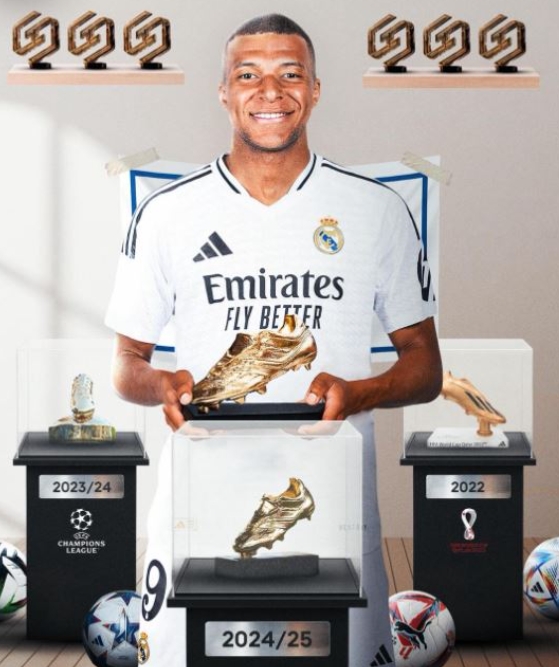 레알은 28일(한국시간) 공식 홈페이지를 통해 "음바페가 2024/25시즌 팀 내 최고의 활약을 펼친 선수에게 수여되는 '마후 파이브 스타 플레이어 상(올해의 선수 상)을 받았다"고 전했다.