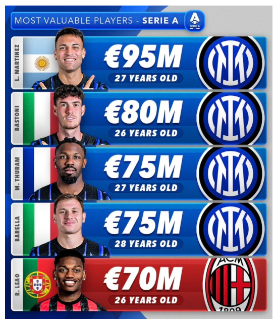 인터밀란 선수가 1-4위까지 싹쓸히 햇네요.