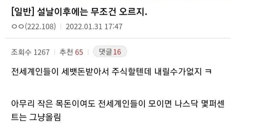설이후 주식이 무조건 오르는 이유는 ㅋㅋ