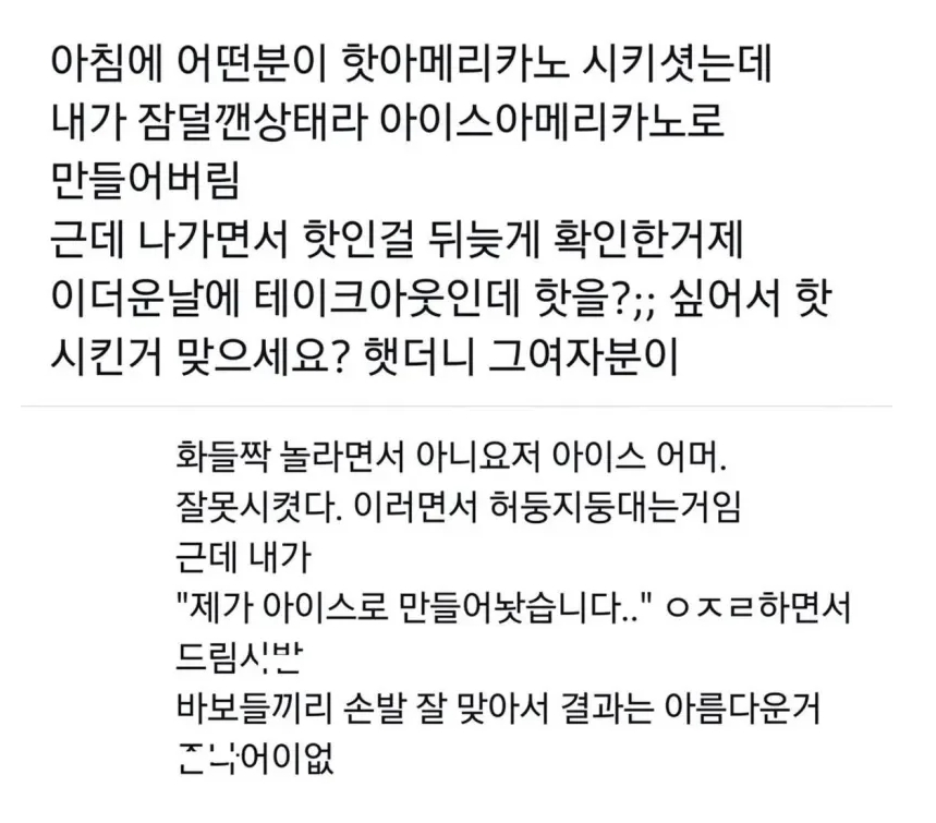 더운날에 핫 아메리카노 시키신 손님 ㅋㅋ