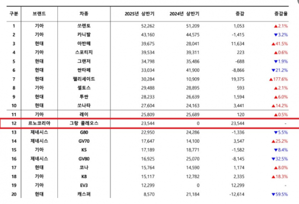 르노그랑 콜레오스 상반기만 2만3천여대 초대박...